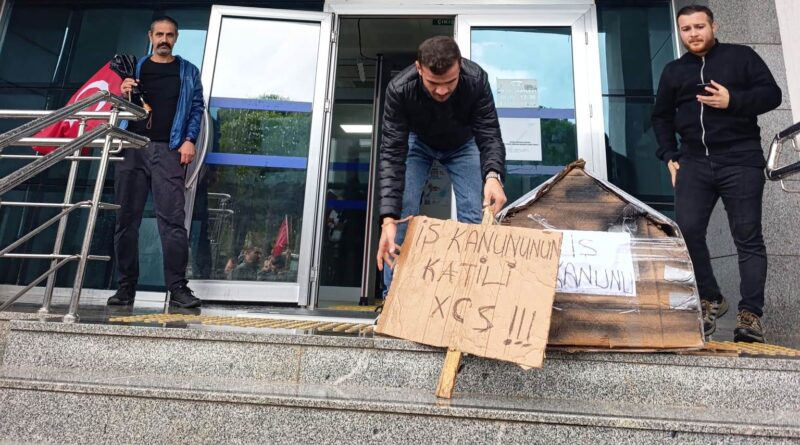 Yaklaşık 5 aydır maaş almayan 2 bin 300 işçinin 9 Kasım itibariyle işten çıkarılacakları SGK’ya bildirilirken emekçiler alacakları için fabrika önünde direnişlerini sürdürüyor. Firmanın Çiğli’deki fabrikası önünde bir araya gelen bir grup işçi “TPI işçisi haklarının bekçisi”, “Hak hukuk adalet” sloganlarıyla üzerinde “İş kanunu” yazan tabutu bıraktı.